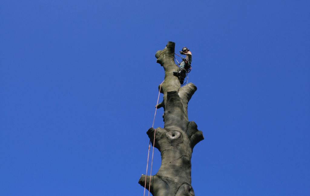 Bei Fällungen wie auch in der Baumpflege sind die Mitarbeiter beim Einsatz in hohen Bäumen mit Betriebsfunk ausgestattet, was höhere Sicherheit und Flexibilität gewährleistet.